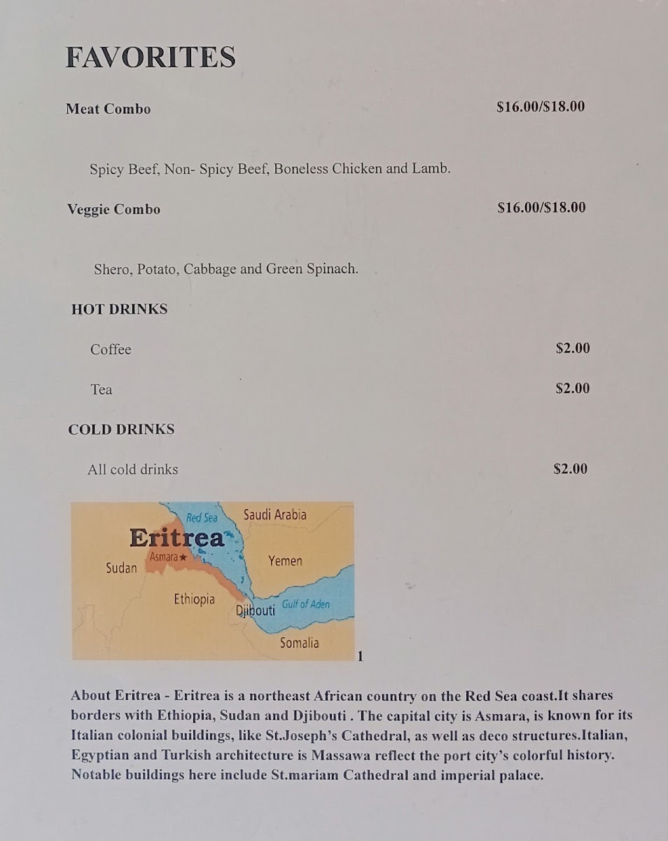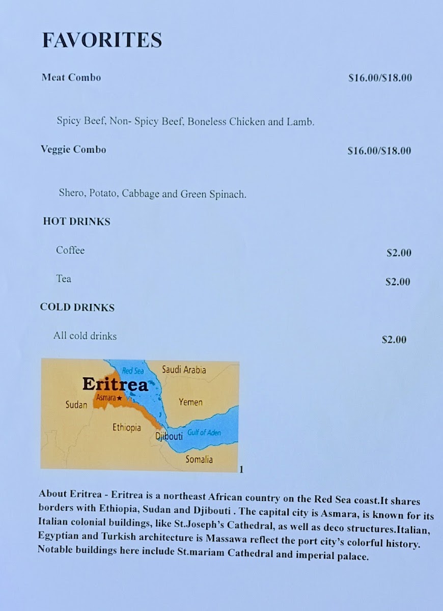 Welcome to Queen Sheba Restaurant & Market, a culinary gem located in Tucson, AZ. Here, you can embark on a delicious journey through Eritrean cuisine, highlighted by their signature Meat Combo featuring spicy and non-spicy beef, tender boneless chicken, and succulent lamb—all for just $16. For those preferring plant-based options, the Veggie Combo which includes shero, potato, cabbage, and green spinach also awaits for the same enticing price.